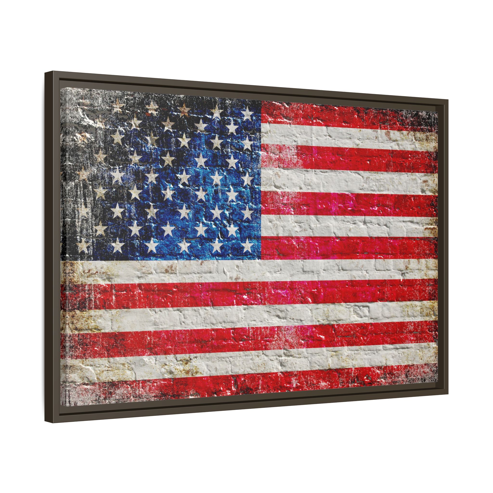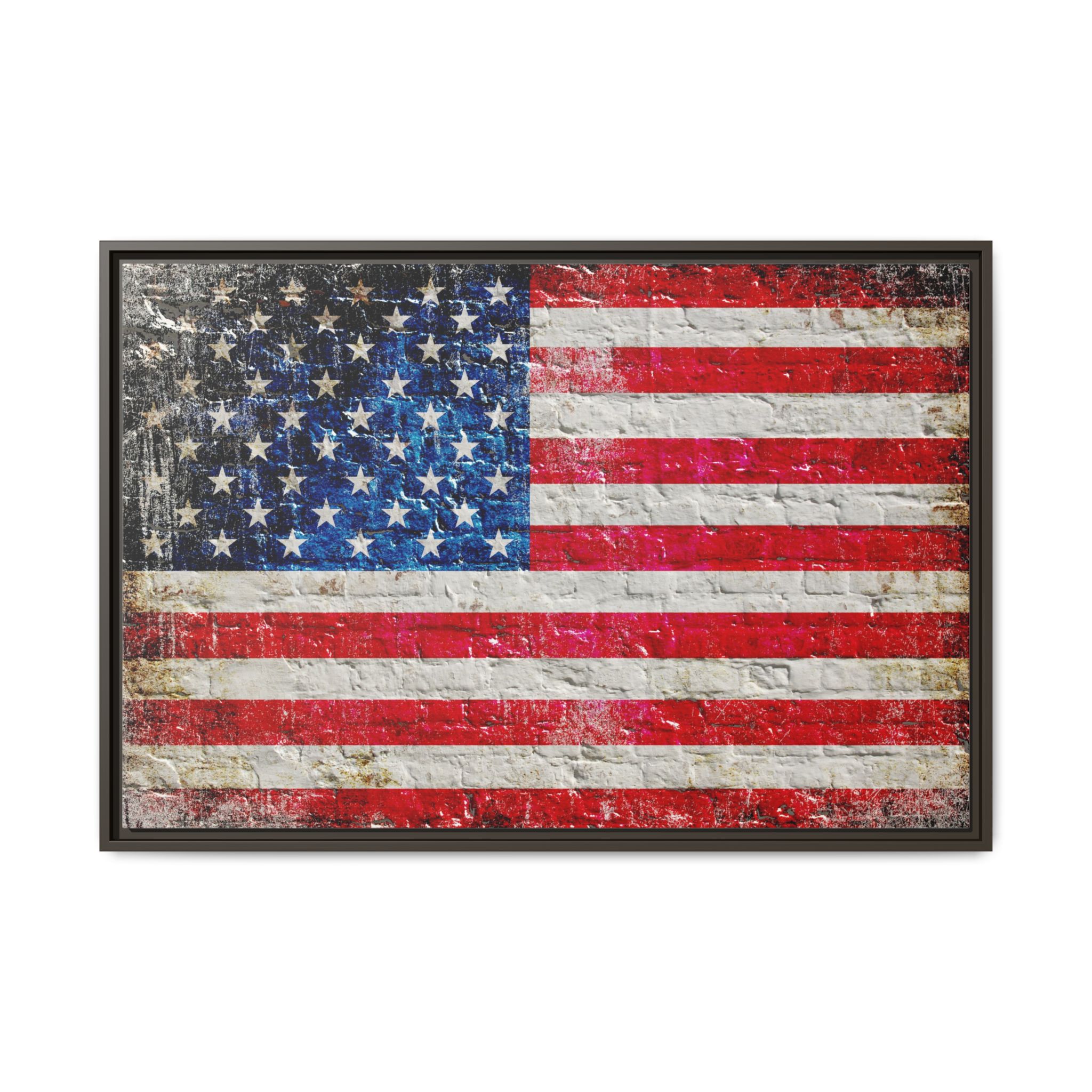 Bring a touch of rustic patriotism to your home with this stunning canvas print featuring a distressed American flag painted on a whitewashed brick wall. Each detail, from the faded stars and stripes to the subtle textures of the brick, is captured with remarkable clarity, creating a piece that feels both vintage and timeless.