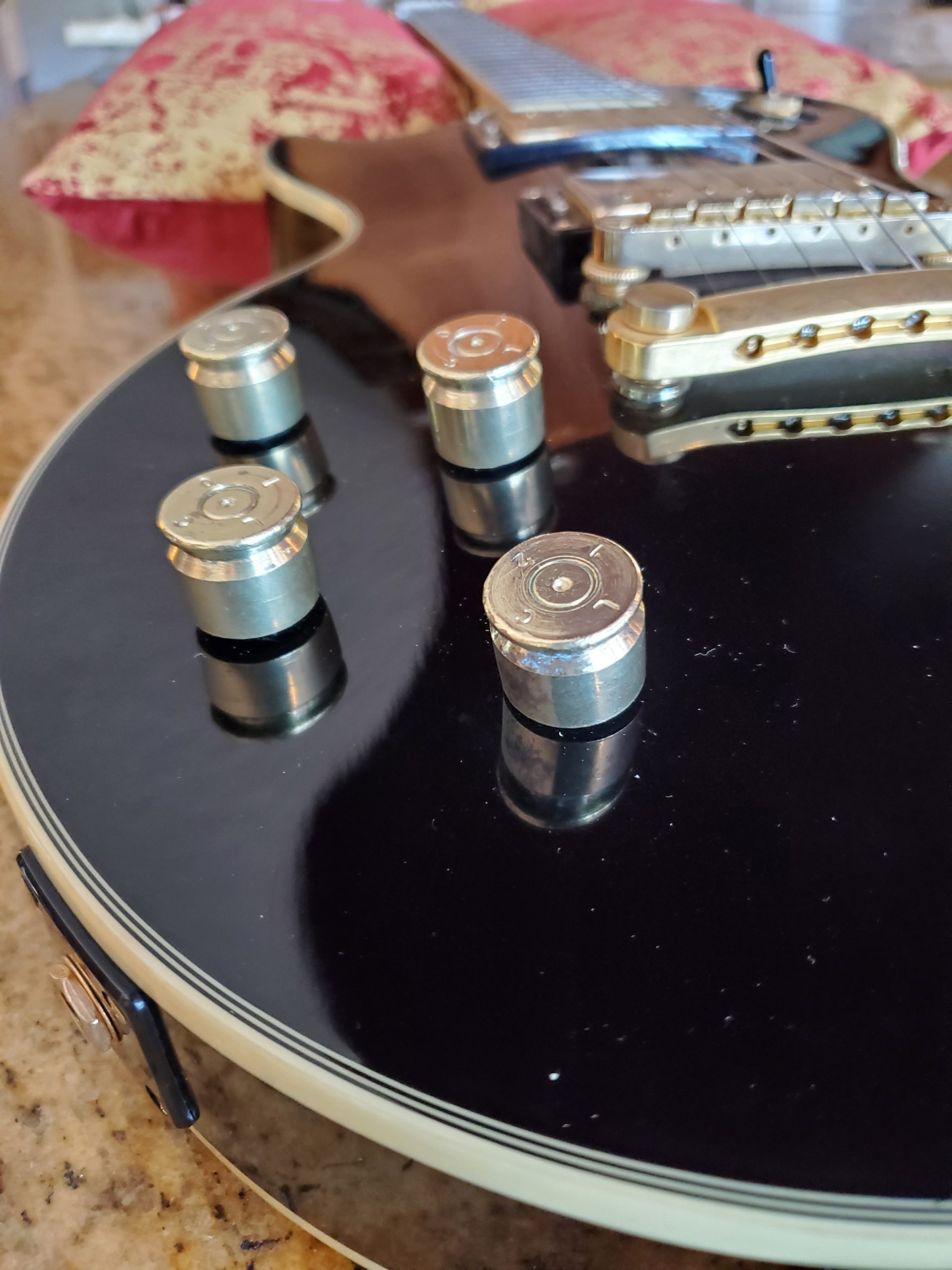 All my guitar knobs are made from genuine fired shell casings and may contain minor blemishes or scratches consistent with the firing and ejection process. The head stamps will vary.
